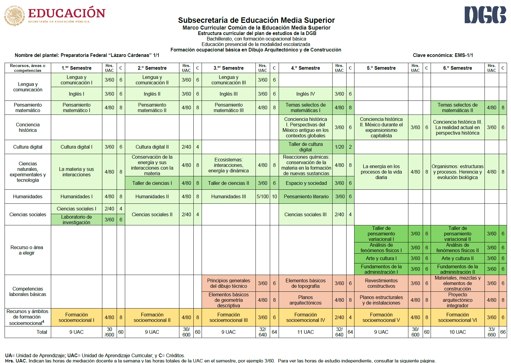 ## Mapa Curricular de Dibujo Arquitectónico y de Construcción